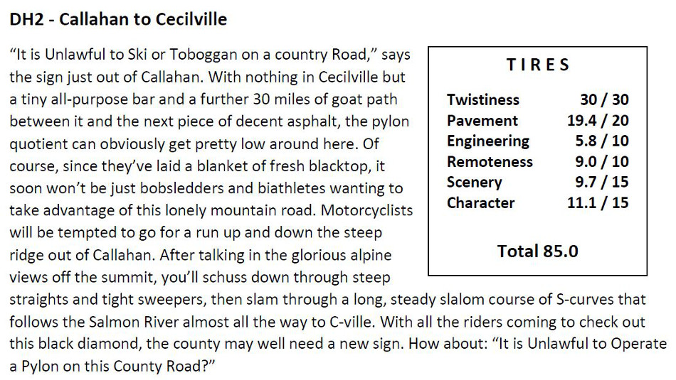 Descriptions below of the Destination Highways (DH) routes in the WeSTOC 19 area.